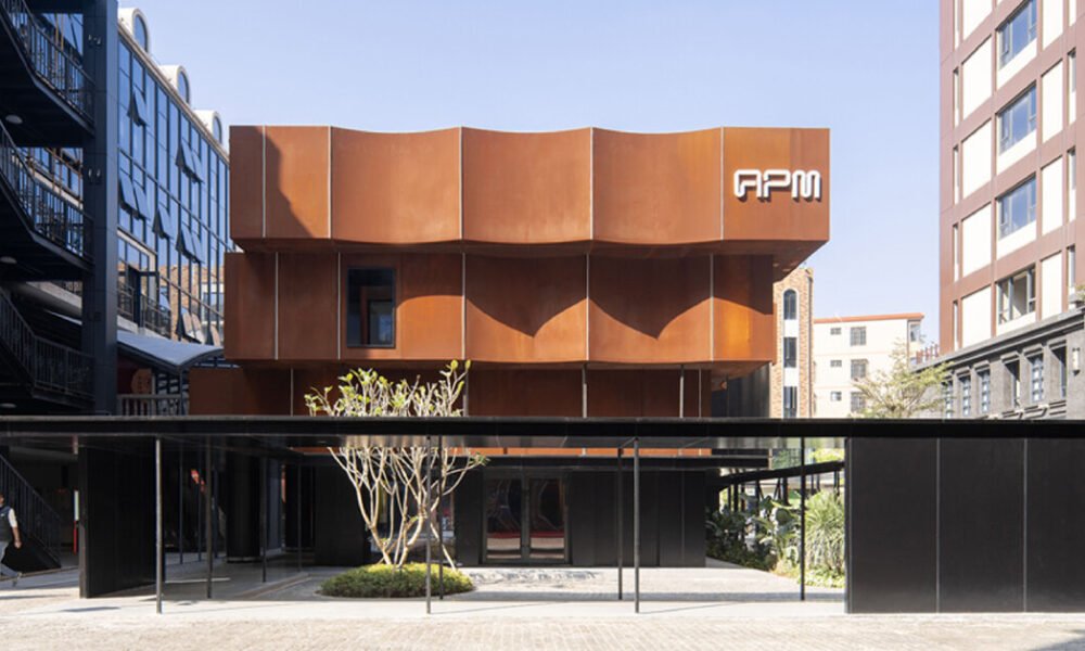Amid the Gaoxingli district in Haikou, Dazhou and Associates’ apm Gallery infuses contemporary art into the community, driving vitality into the east side of the block. The two-story structure is wrapped in undulating corten steel, housing within its tiers it a small-scale community art gallery unfolding across a sequence of corridors and courtyards. Remaining sensitive to its commercial siting, the apm Gallery encircles the original building with a ring of modestly scaled passageways, harmoniously guiding foot traffic inside.