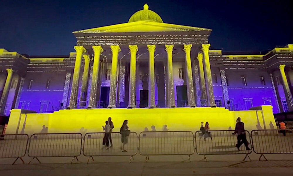 The National Gallery has illuminated its central London elevation with a dazzling light show, marking a momentous occasion in its history—the bicentenary of its founding.