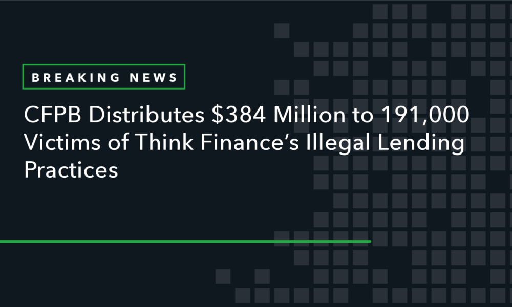 WASHINGTON, D.C. – The Consumer Financial Protection Bureau (CFPB) today distributed more than $384 million to about 191,000 consumers harmed by Think Finance. Think Finance, a Texas-based online lender, deceived borrowers into repaying loans they did not owe. The CFPB distributed the money through its victims relief fund.